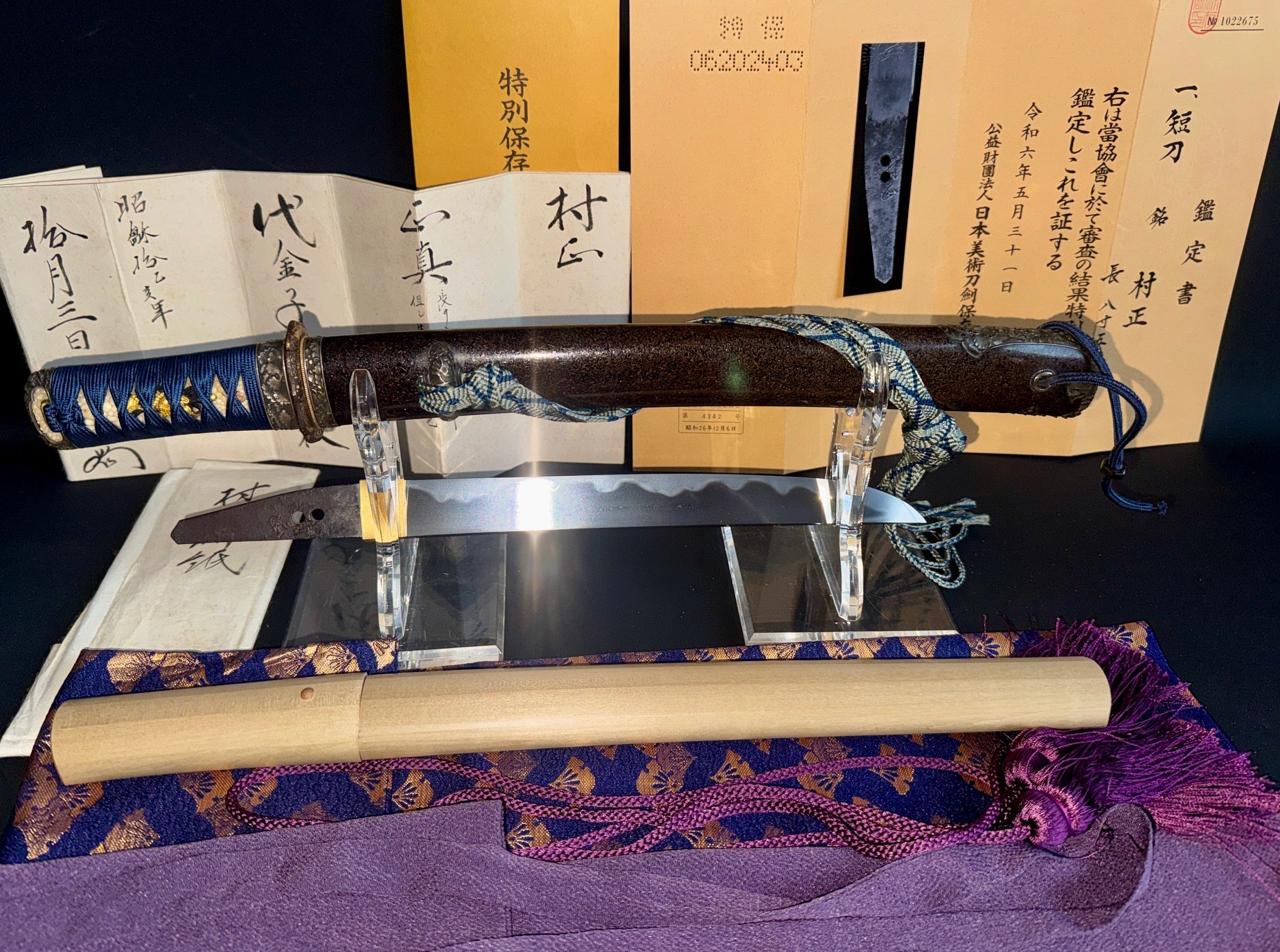 This tantō has been awarded NBTHK Tokubetsu Hozon Tōken certification, confirming its authenticity and recognizing it as a sword of particularly high importance. Tokubetsu Hozon status is reserved for blades that demonstrate superior quality and historical value, placing this work firmly within the upper echelon of surviving Muramasa examples.
