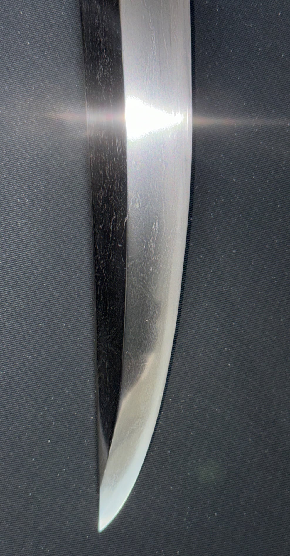 Kamakura Aoe blades frequently exhibit a soft, luminous surface quality—less flamboyant than Ichimonji, yet deeply sophisticated and controlled.