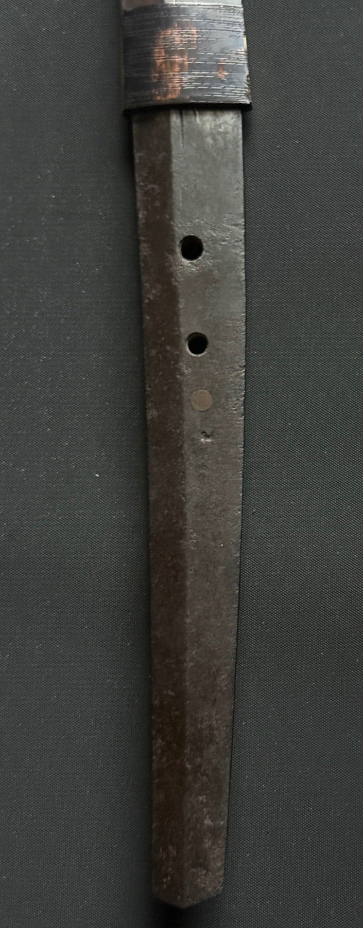 The weight of 768 grams for a 68.8 cm blade reflects excellent forging density and healthy preservation, suggesting substantial original thickness and integrity.
