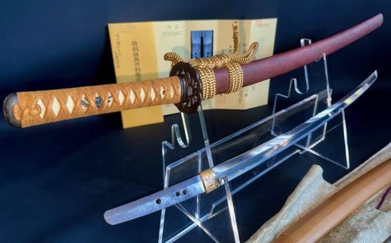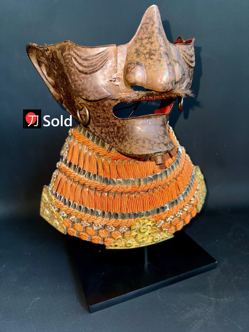 Menpō of this quality, combining strong expression, well-preserved sabiji finish, and official Japanese certification, are increasingly difficult to source on today’s market. This example stands out not only as a functional relic of samurai warfare but also as a sculptural object of enduring cultural significance.
