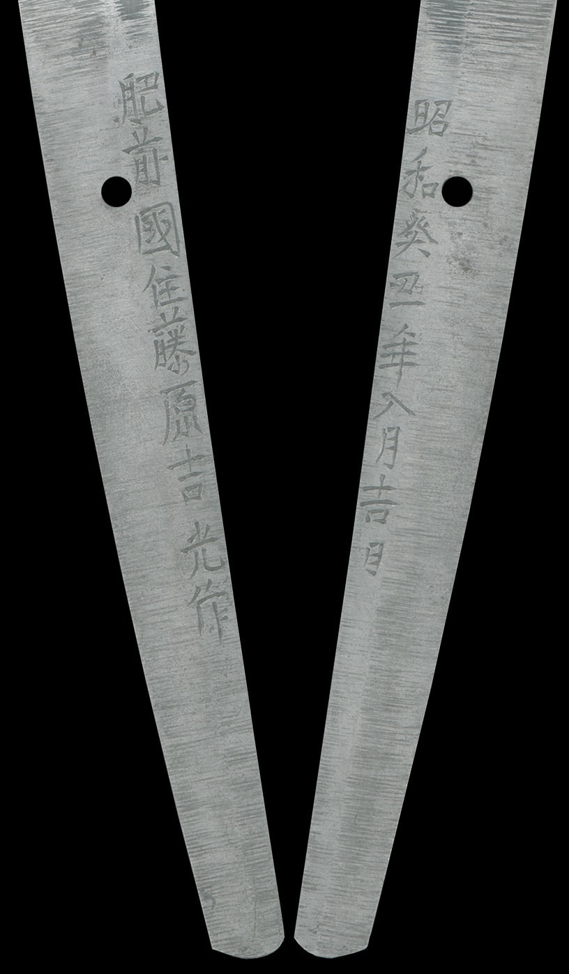 Fukuda Mitsuo (1912– ) was born in Saga Prefecture and became one of the leading swordsmiths of his generation. In 1932, he apprenticed under Koyama Nobumitsu, a prominent smith of the early Showa period. His early training under Nobumitsu provided a solid foundation in traditional forging techniques, which he later combined with his own technical innovations.