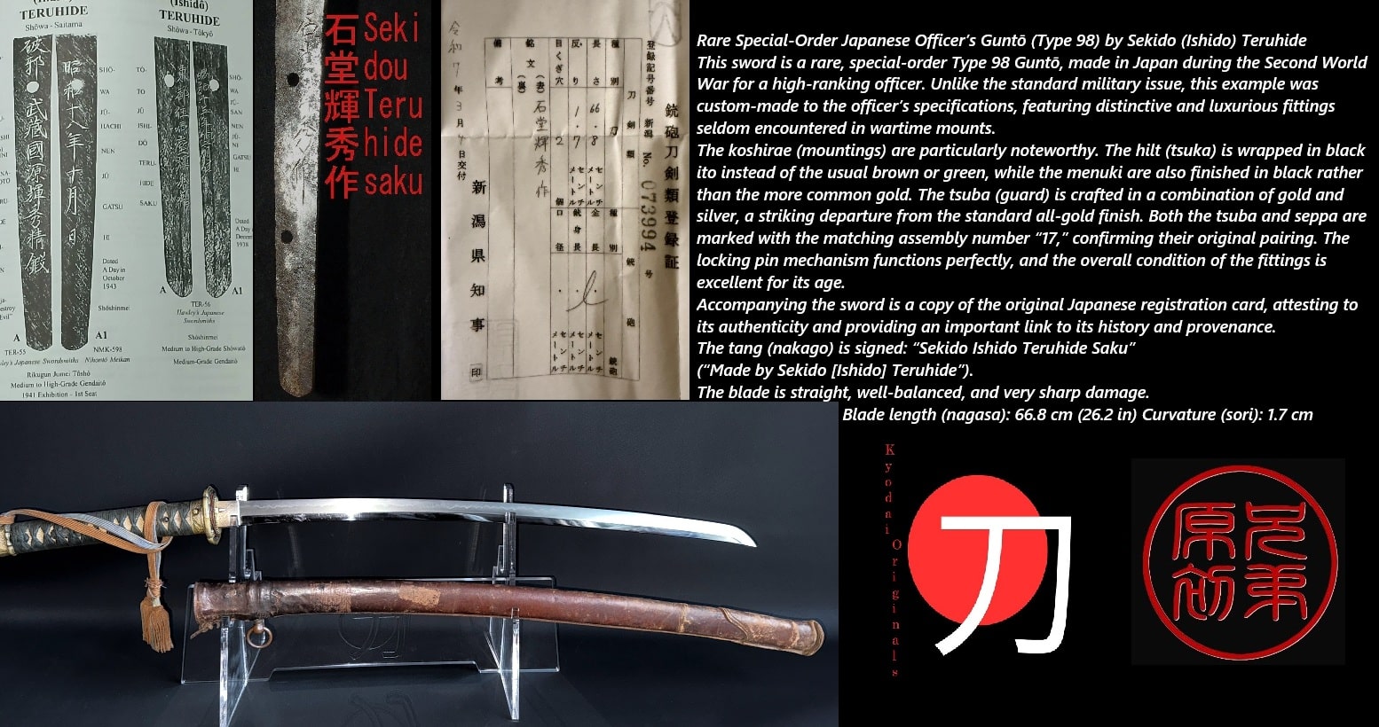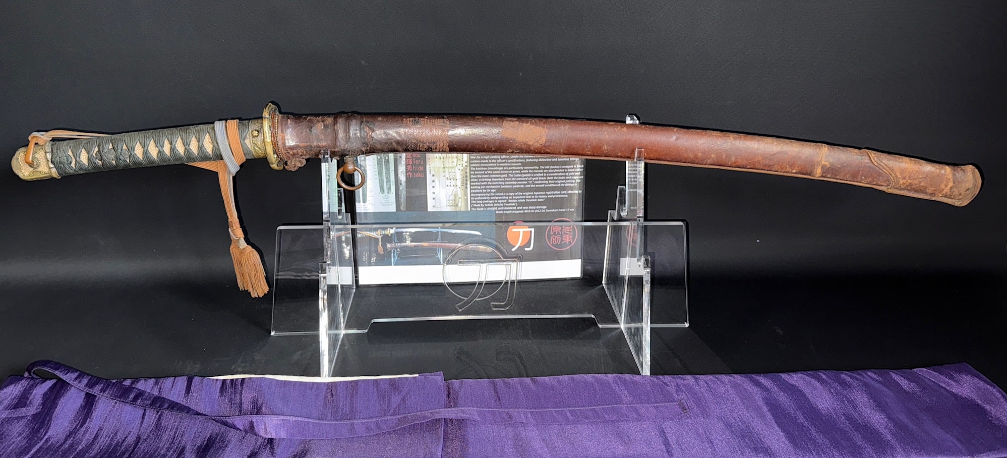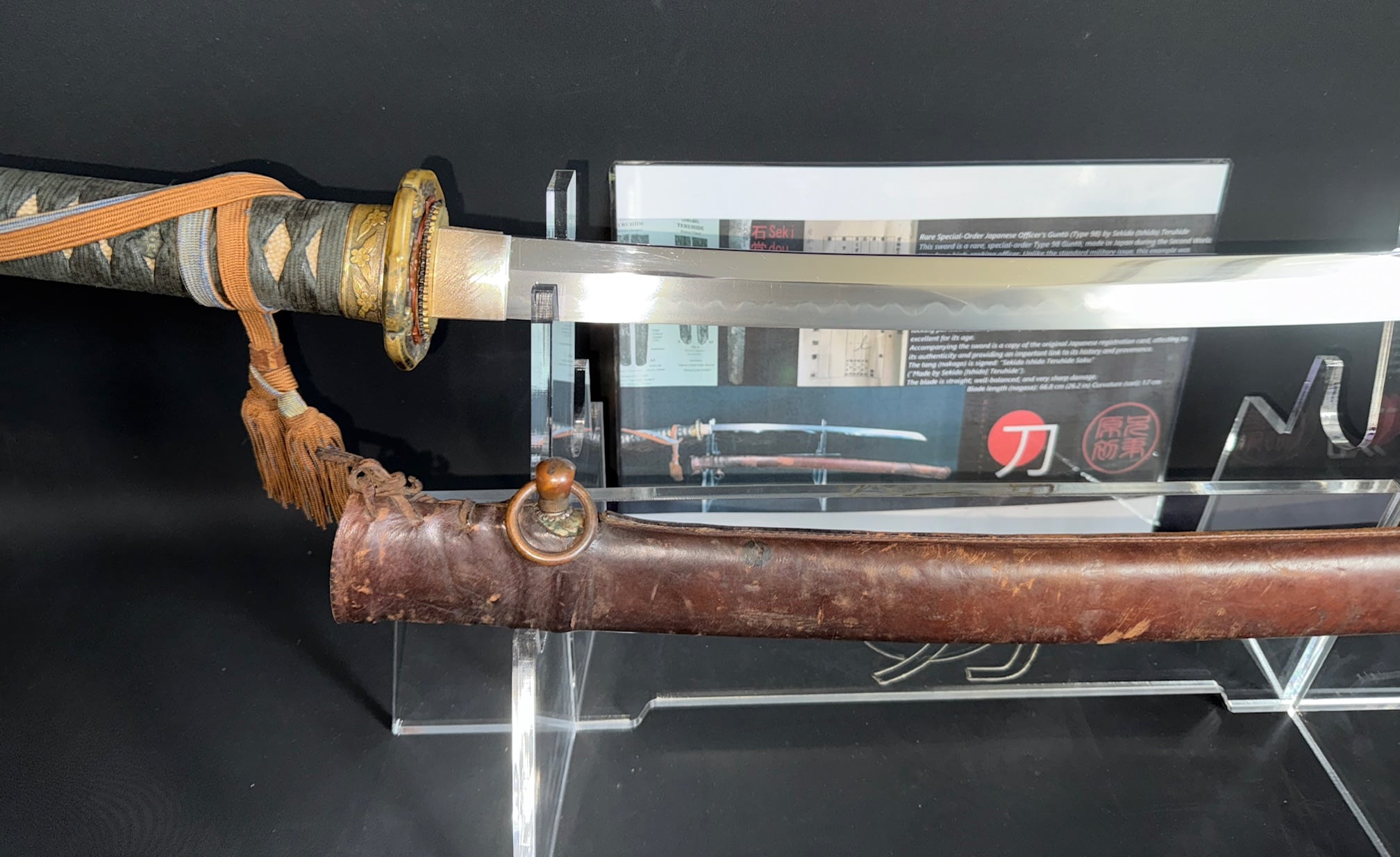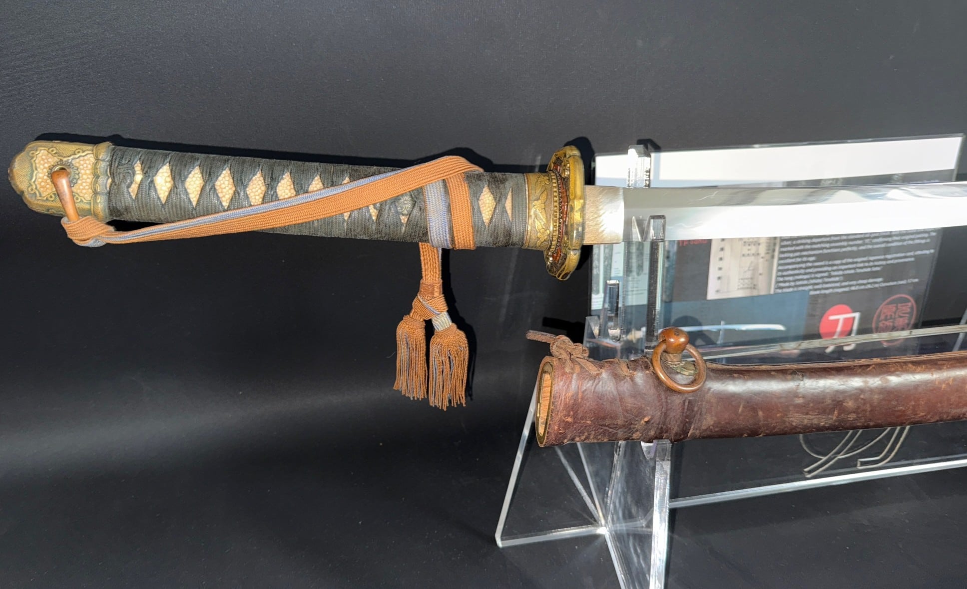 This sword is a rare, special-order Type 98 Guntō, made in Japan during the Second World War for a high-ranking officer. Unlike the standard military issue, this example was custom-made to the officer’s specifications, featuring distinctive and luxurious fittings seldom encountered in wartime mounts.