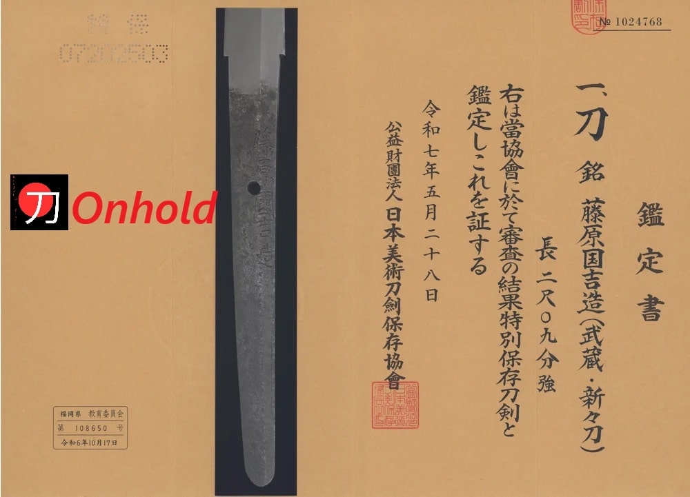 The combination of a refined Kuniyoshi blade, an authentic concealed mounting, and its Tokubetsu Hozon certification makes this katana a compelling example of Japan’s transitional sword culture. It bridges the worlds of Edo-period martial refinement and Meiji-era adaptation, offering collectors a blade of artistic quality, historical depth, and undeniable character.